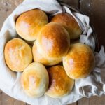 - Second rise: Cover and let them rise to double in size again, this time about 40 minutes. Brush with egg wash (1 egg mixed with a fork). Meanwhile, preheat the oven to 410℉ (210℃).